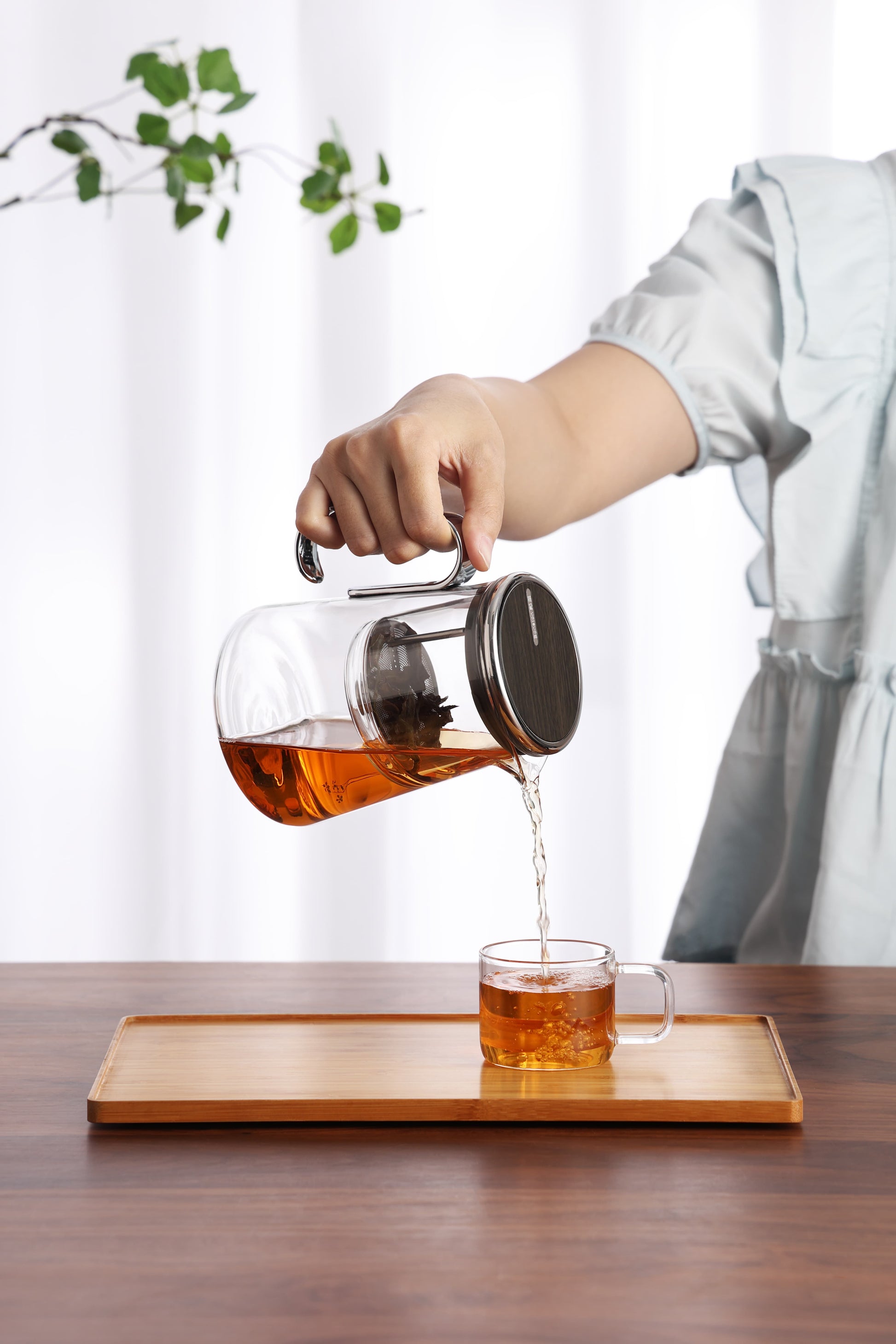 Denna premiumtekanna i borosilikatglas kombinerar funktionalitet med elegant design. Det värmesäkra glaset tål höga temperaturer, medan det magnetiska roterande locket ger perfekt kontroll vid servering. Den avtagbara silen förenklar rengöringen betydligt. Med en praktisk volym på 700ml och modernt utseende passar den lika väl hemma som i professionella miljöer. Tillverkad av en erfaren producent med 98,7% kundnöjdhet, garanterar denna tekanna både kvalitet och tillförlitlighet för den kräsne tékonsumenten.